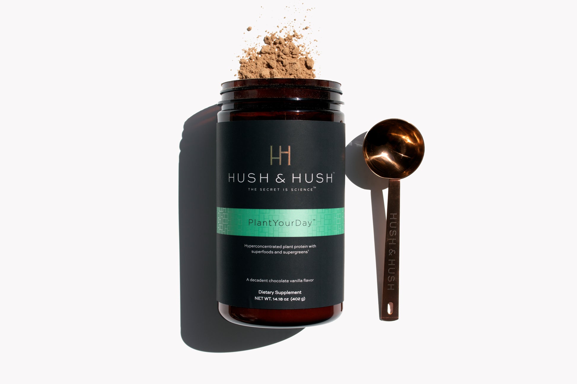 Proteína de guisante orgánica, proteína de calabaza orgánica, brócoli en polvo, zanahoria en polvo, hierba de cebada en polvo, hierba de trigo en polvo, verdolaga en polvo, alfalfa en polvo, clorella en polvo, espirulina en polvo, algas marinas, ginseng en polvo, diente de león en polvo, cúrcuma, cola de caballo en polvo, cardo mariano en polvo, cáscara de psyllium en polvo, capullo de rosa en polvo, shiitake, aloe vera en polvo, remolacha en polvo, canela en polvo, frambuesa en polvo, fresa en polvo, açaí en polvo, goji en polvo, granada en polvo, melocotón en polvo, manzana en polvo, arándano en polvo, fibra (IMO) tapioca, fibra (inulina), extracto de semilla de uva, extracto de té verde, bromelina, papaína, taurina, Lactobacillus a., Lactobacillus r., Lactobacillus s., Bifidobacterium l., Bifidobacterium c., magnesio, calcio, cromo, selenio, vitamina B1 HCL, vitamina B2, Niacinamida, vitamina B6 HCL, vitamina B12, ácido fólico, vitamina D3, bitartrato de colina, cacao, sabor a chocolate, sabor a vainilla, sal marina, goma de mascar, stevia D-95.